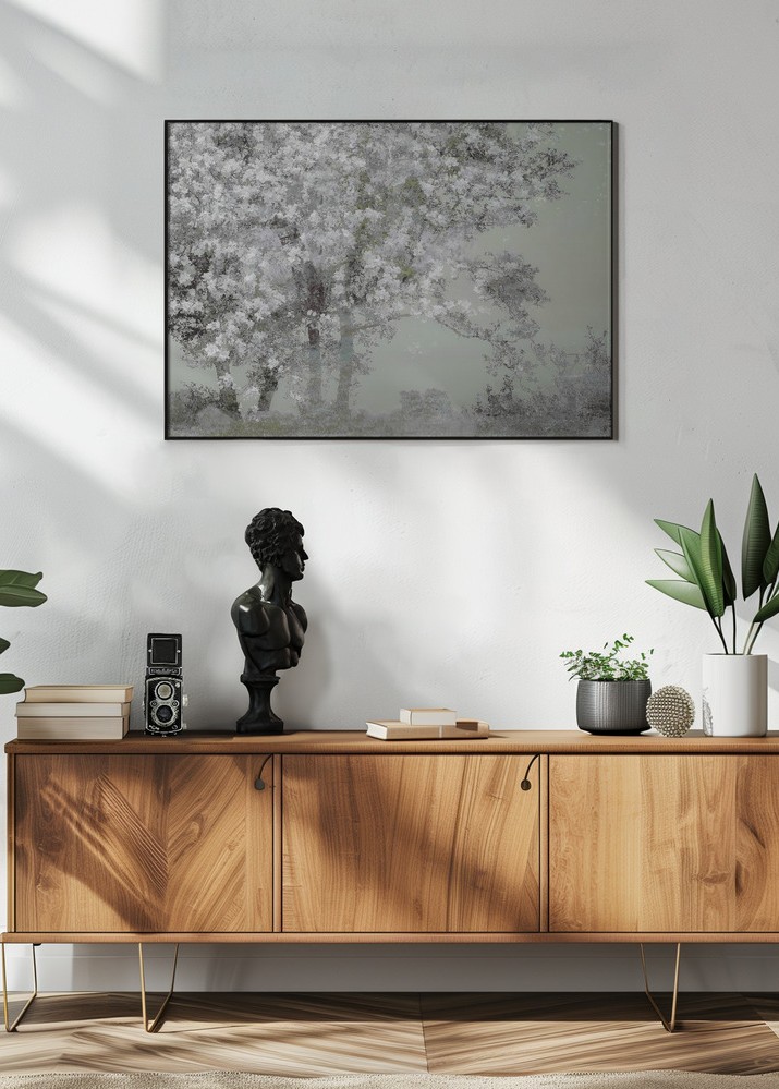 Stilīgs plakāts, kas ir izdevīgi saskaņots ar citiem motīviem, lai izveidotu modernu attēlu sienu.