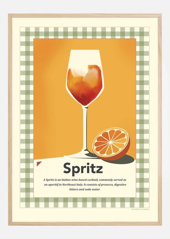 Visiem, kas ilgojas pēc tā brīvdienu sajūtas, mēs piedāvājam plakātu, kas uzreiz transportē jūs uz saulainajām terasēm Ziemeļitālijā. Mūsu retro iedvesmotais Spritz plakāts godina klasisko aperitīvu ar ilustrāciju, kas izstaro siltumu un prieku. Glāzes oranžās nokrāsas uz drosmīga, zaļi rūtainā fona rada iespaidu, kas ir gan vintage, gan mūžīgs.