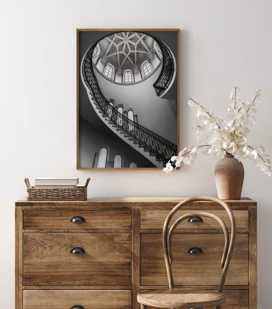 Stilīgs plakāts, kas ir izdevīgi saskaņots ar citiem motīviem, lai izveidotu modernu attēlu sienu.