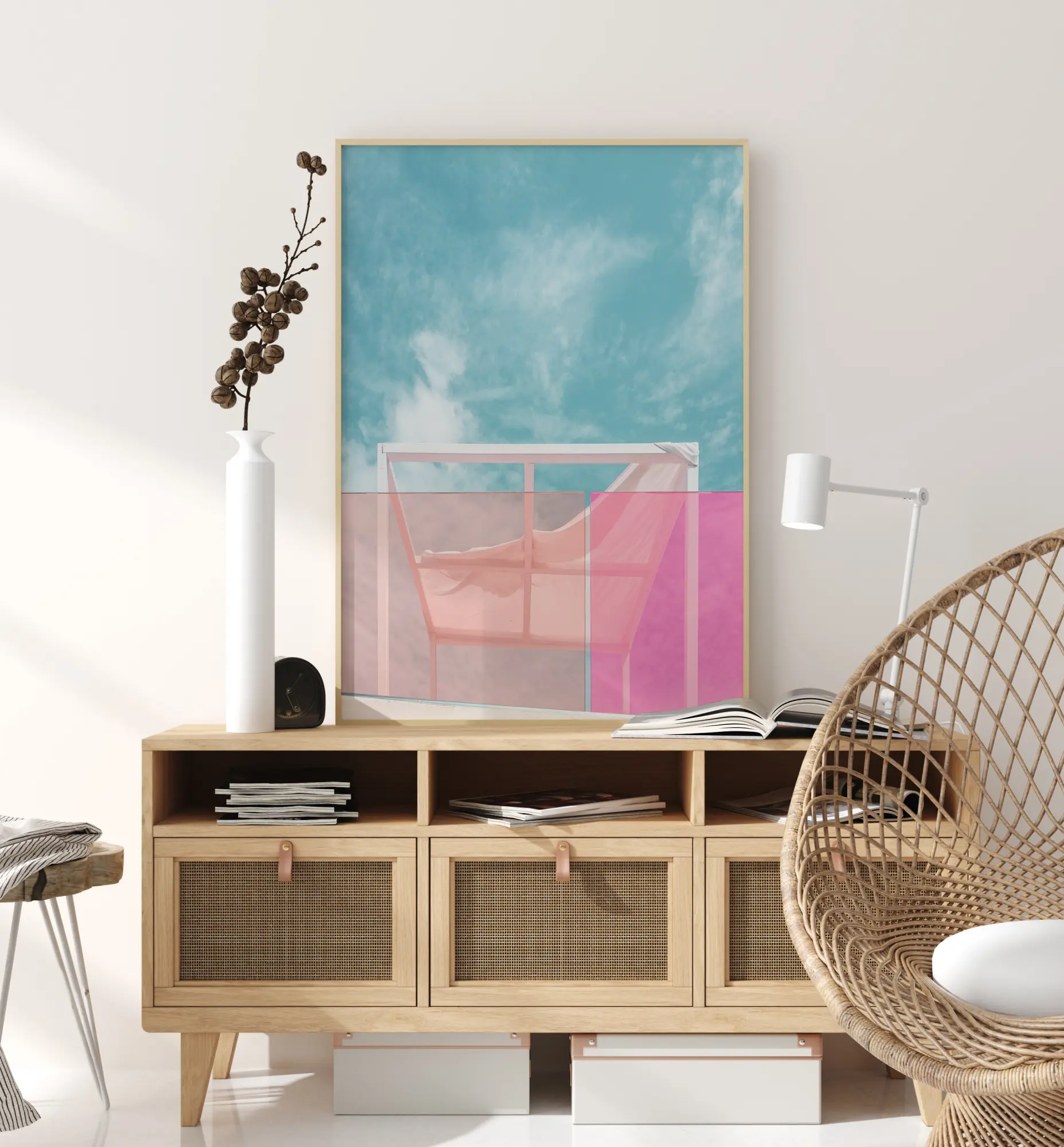 Stilīgs plakāts, kas ir izdevīgi saskaņots ar citiem motīviem, lai izveidotu modernu attēlu sienu.