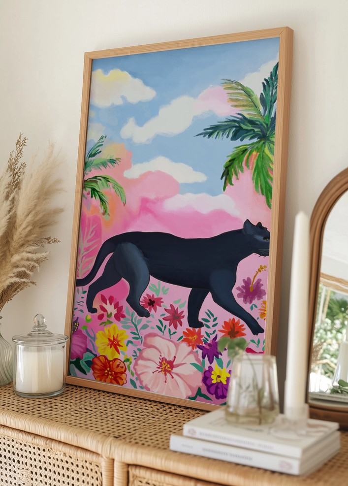 Stilīgs plakāts, kas ir izdevīgi saskaņots ar citiem motīviem, lai izveidotu modernu attēlu sienu.