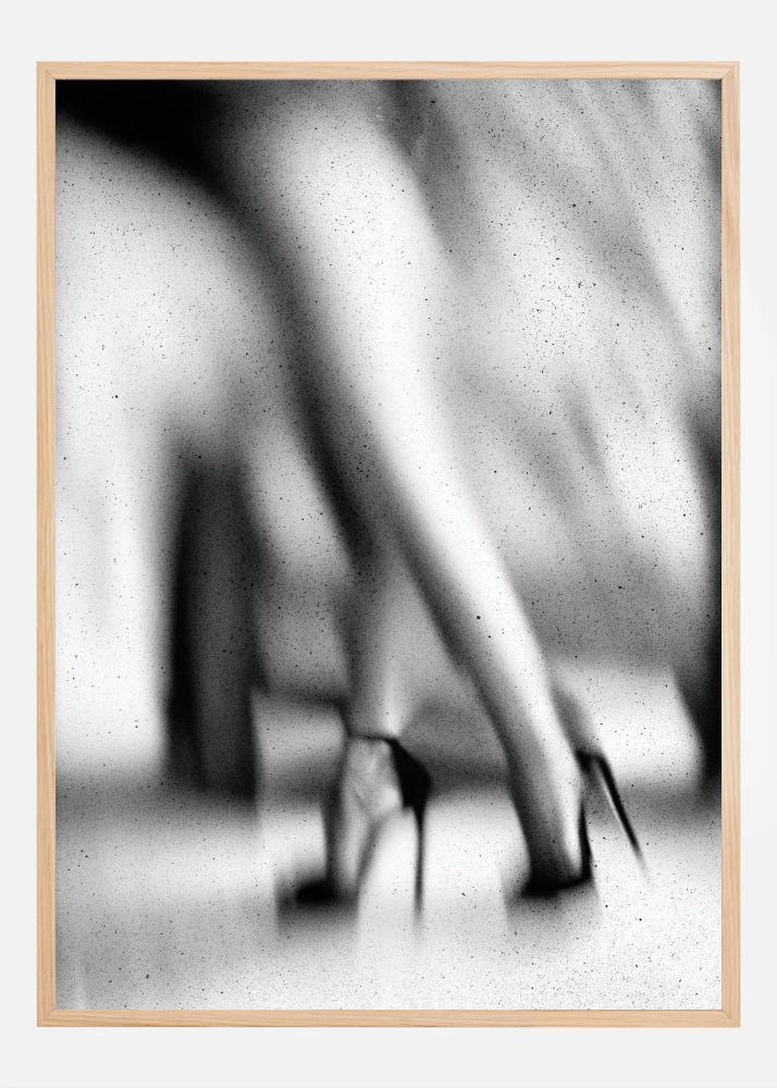 Šis māksliniecisks plakāts rotaļājas ar izplūdumu un kontrastu, lai radītu kustības un abstrakcijas sajūtu. Tas attēlo pāris kāju augstpapēžu kurpēs atmosfēriskā un gandrīz kustības neasumā, kas piešķir darbam ēteriālu un dinamisku sajūtu. Plakāta monohromā krāsu palete rada gan laika nesajutīguma, gan modernitātes sajūtu.
